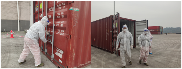 ? ? ? ?演練開始后,港口查驗(yàn)區(qū)工作人員迅速進(jìn)入實(shí)戰(zhàn)狀態(tài),對進(jìn)口集裝箱貨物進(jìn)行消毒和核酸采樣檢測,模擬發(fā)現(xiàn)貨物檢測呈陽性后的處置場景,啟動(dòng)疫情防控應(yīng)急處置預(yù)案,有條不紊地開展消殺封控、轉(zhuǎn)運(yùn)隔離、信息報(bào)送等安全管控工作。