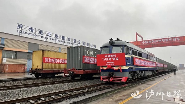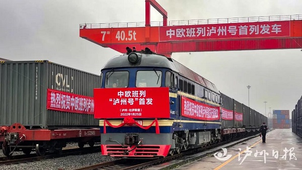 ? ? ? ?1月25日上午,一列裝載50個(gè)40尺集裝箱貨物的鐵路班列緩緩駛出四川港投集團(tuán)瀘州港,標(biāo)志著中歐班列(瀘州號(hào))首發(fā)成功。
