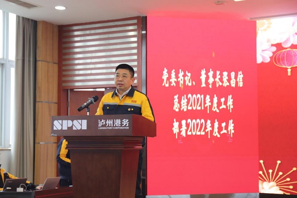 ? ? ? ?1月28日上午,瀘州港務(wù)公司召開2021年度工作總結(jié)暨表彰大會,回顧總結(jié)2021年工作亮點,分析和研判當(dāng)前發(fā)展態(tài)勢,部署2022年全年工作。瀘州港務(wù)公司在家班子成員、全體員工(除當(dāng)班作業(yè)人員外)170余人參加會議。