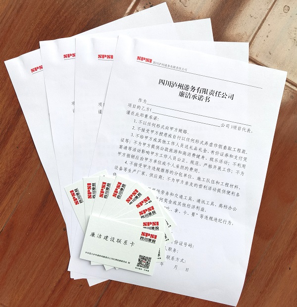 ? ? ? ?為進一步強化干部職工廉潔從業(yè)意識,打通與承建方(供貨方)廉潔合作“最后一公里”,近日,公司紀委印制一批廉潔建設聯(lián)系卡和廉潔承諾書,及時與承建方(供貨方)簽訂廉潔承諾書的同時向其發(fā)放聯(lián)系卡,著力為公司風清氣正干事創(chuàng)業(yè)環(huán)境保駕護航。